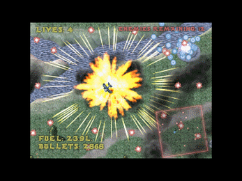 Notwithstanding the implementation of limited lives, fuel is also in short supply, as is ammunition. If either of these resources have been completely expended, the game ends in failure.